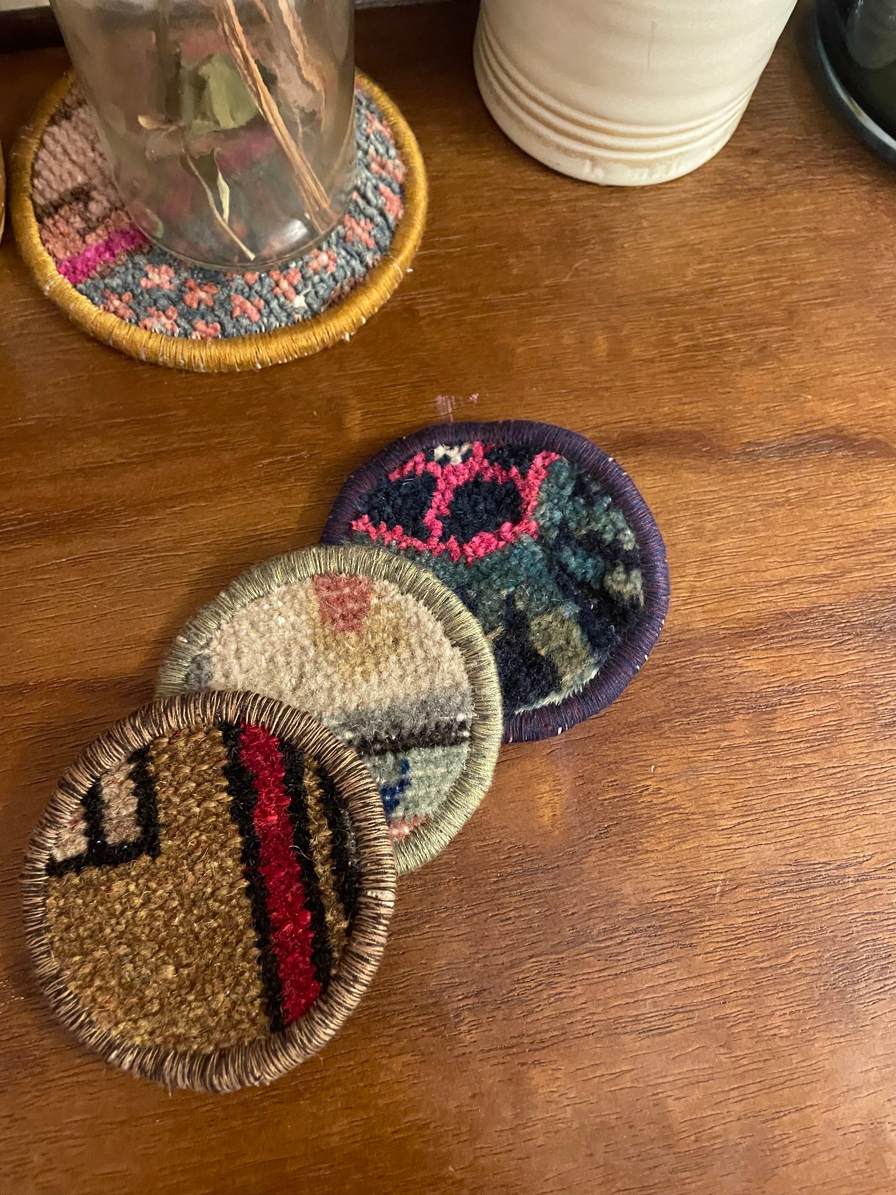 ヴィンテージラグで作られたコースターはとってもエコな商品です✳︎